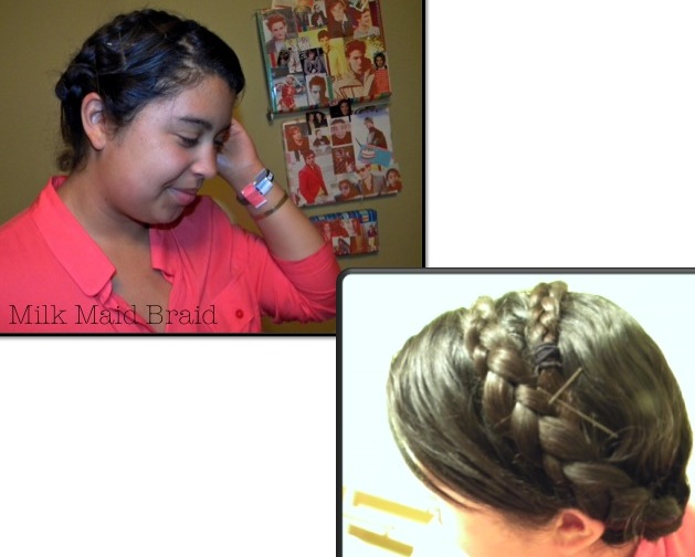 I suck at hair stuff. My idea of getting ready in the morning (aside from washing and straightening- which is really easy) is getting up and tossing it from side to side. So when I saw a tutorial for the Milk Maid Braid that said it was so easy that the model did it herself. I was like, "Yeah sure, I'll show you it's not that easy". Insert foot into mouth now. Took me twenty minutes and it came out nearly perfect. I'll be nice and share the source of this miraculous braid. Good luck!